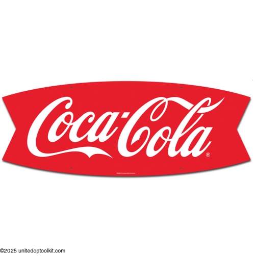 - "Fishtail" die-cut shaped metal sign with the Coca-Cola logo.